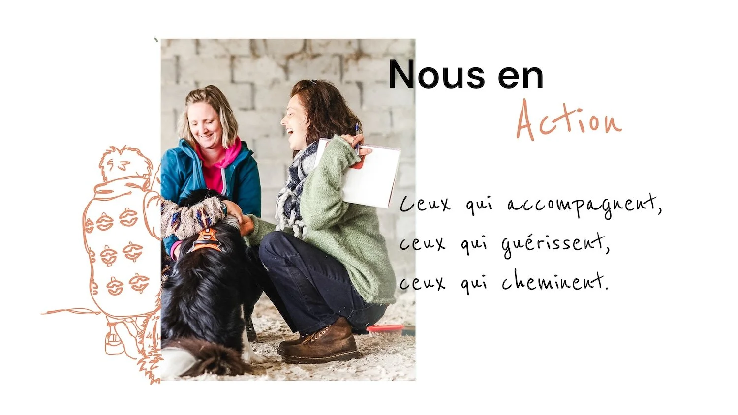 Dans les écoles, les CPE, les CHSLD, les centres spécialisés ou les maisons d’accueil, nos partenaires animaliers et nos intervenantes spécialisées tissent du lien là où les mots parfois manquent. Ils apaisent, éveillent, réparent. Ils marchent doucement dans la vie des gens — et laissent derrière eux des empreintes qu’on n’oublie pas.